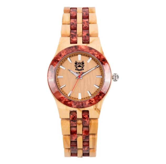 Olive Wood with Red marble pattern case and band